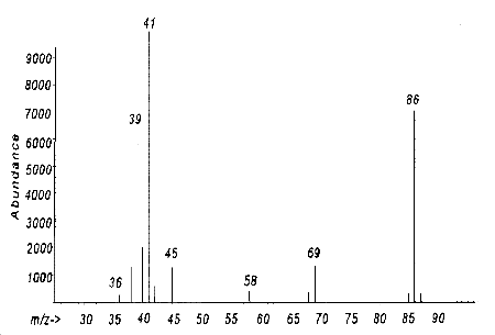 ![]() Figure 3.6.2.2 A mass spectrum of methacrylic acid.