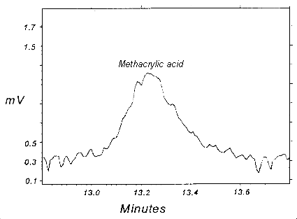 ![]() Figure 1.2.2.2 A chromatogram of the RQL for methacrylic acid.