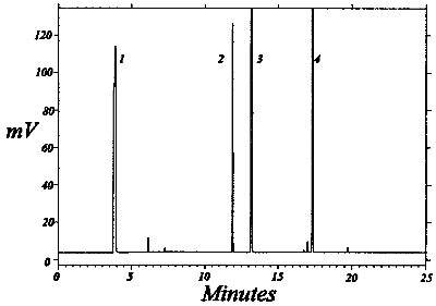 0.5 µm coating of 3.1.3 An electronic integrator or some suitable method of measuring peak areas. 3.1.4 Two milliliter vials with TeflonTM-lined caps. 3.1.5 A 10µL syringe or other convenient size for sample injection. 3.1.6 Pipets for dispensing the desorbing solution. A RepipetŪ dispenser was used in this study. 3.1.7 Volumetric flasks - 5 or 10 mL and other convenient sizes for preparing standards. 3.2 Reagents
