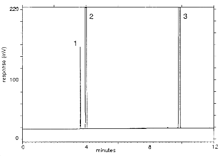 ![]() Figure 3.5.1 A chromatogram of an analytical standard at the PEL. 3.5.2 Peak areas are measured by an integrator or other suitable means. 3.6 Interferences (analytical)