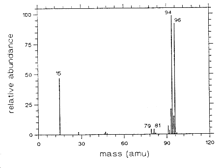 ![]() Figure 3.6.2 Mass spectra of methyl bromide. 3.7 Calculations