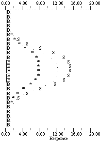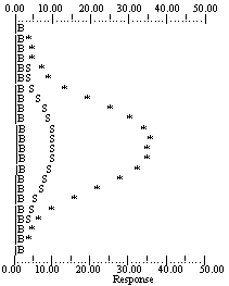 The first entry (designated by the letter "S") was the standard used to determine the peak or interference location. This location is reported in terms of wavelength (nm) and is the determinant for calculating the number of motor steps that the peak line (or interference) was found to be "off-profile" from the profiling element.