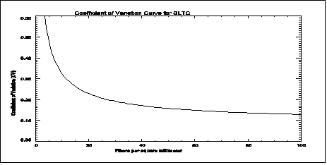 following is presented as an example of how the Data for the CV curve shown below is from 395 samples collected during OSHA compliance inspections and analyzed from October 1980 through April 1986. Each sample was counted by 2 to 5 different counters independently of one another. The standard deviation and the CV statistic was calculated for each sample. This data was then plotted on a graph of CV vs. fibers/mm(2). A least squares regression was performed using the following equation: