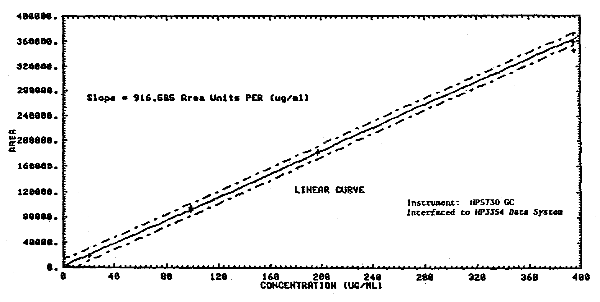 1.2.2. The pooled coefficient of variation of the analytical procedure over the range of 3.95 to 395 µg per sample is 0.023. (Section 4.2.) This represents an air concentration range of 0.54 to 54 ppm based on the recommended sampling and analytical procedures. 1.2.3. The sensitivity of the analytical procedure over a concentration range representing 0.02 to 2 times the target concentration based on the recommended air volume is 916.6 area units per µg/mL. The sensitivity is determined by the slope of the calibration curve (Section 4.2.) The sensitivity will vary somewhat with the particular instrumentation used in the analysis. 1.2.4. The lower limit of the estimated working range, assuming adequate desorption efficiency, is 0.27 ppm. The upper limit of the working range is dependent on the capacity of the collection medium. 1.3. Accuracy